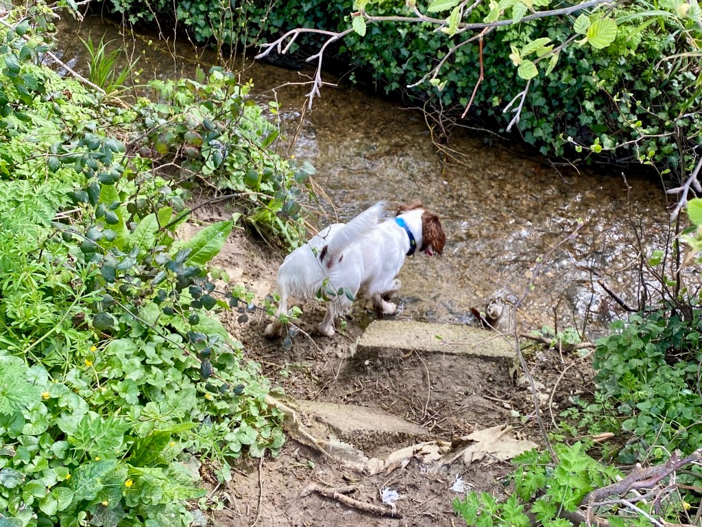 Murphy's view: I love this place folks! I can run my fastest, I meet lots of other dogs, and the stream is fantastic! Also I like to disappear into the hedges and have a good sniff while keeping an eye on the humans, sometimes they disappear when we go into woods, but here I always know where they are!