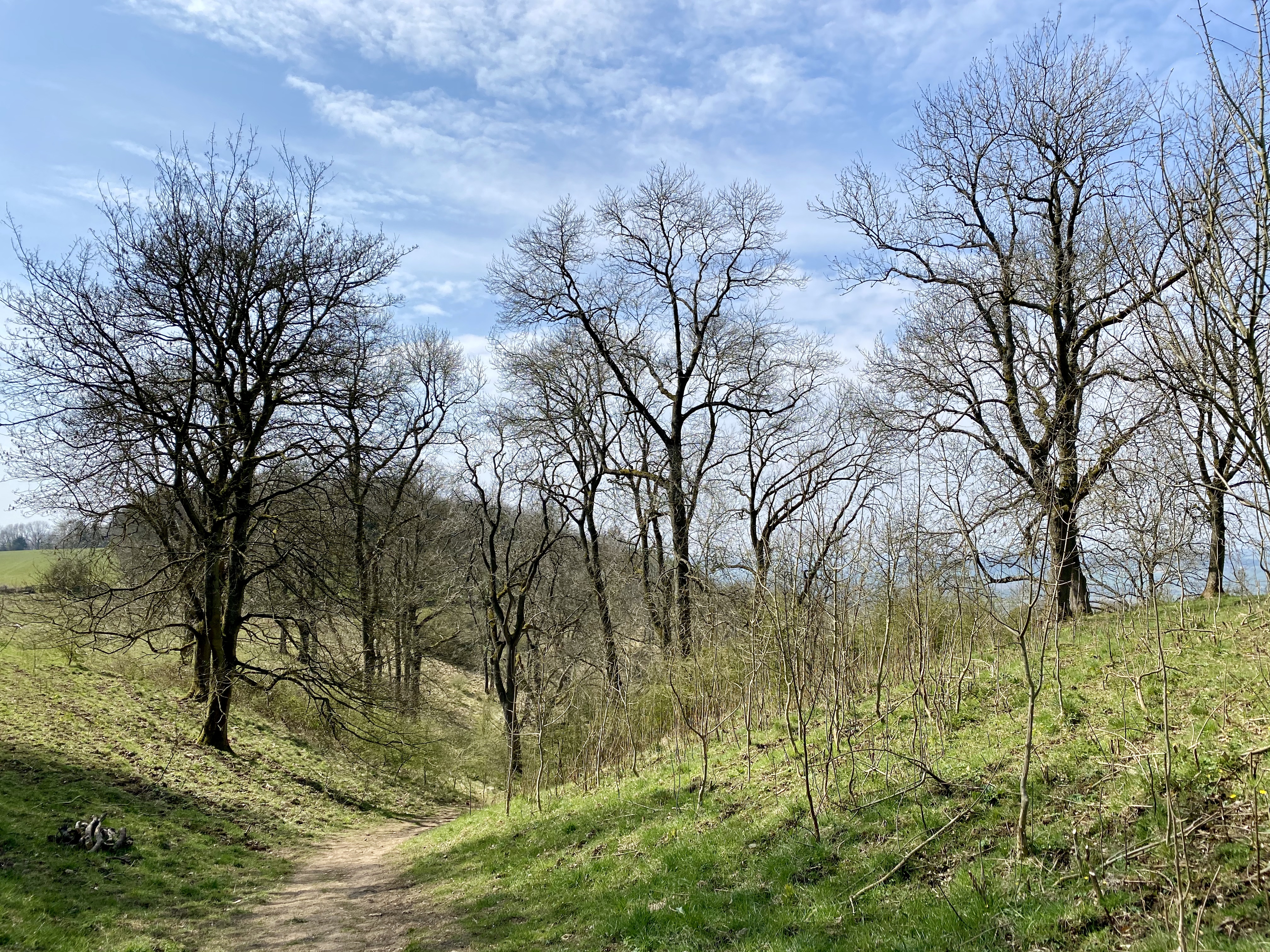 The trail leads uphill out of town and I was incredibly lucky with the weather, fresh but sunny. Perfect walking weather, and like I have already said, the signposting was brilliant, so no excuses not to do this! (one thing to note though: the old metal posts give the distance in km… while the new wooden ones give them in miles… don’t ask me why…)