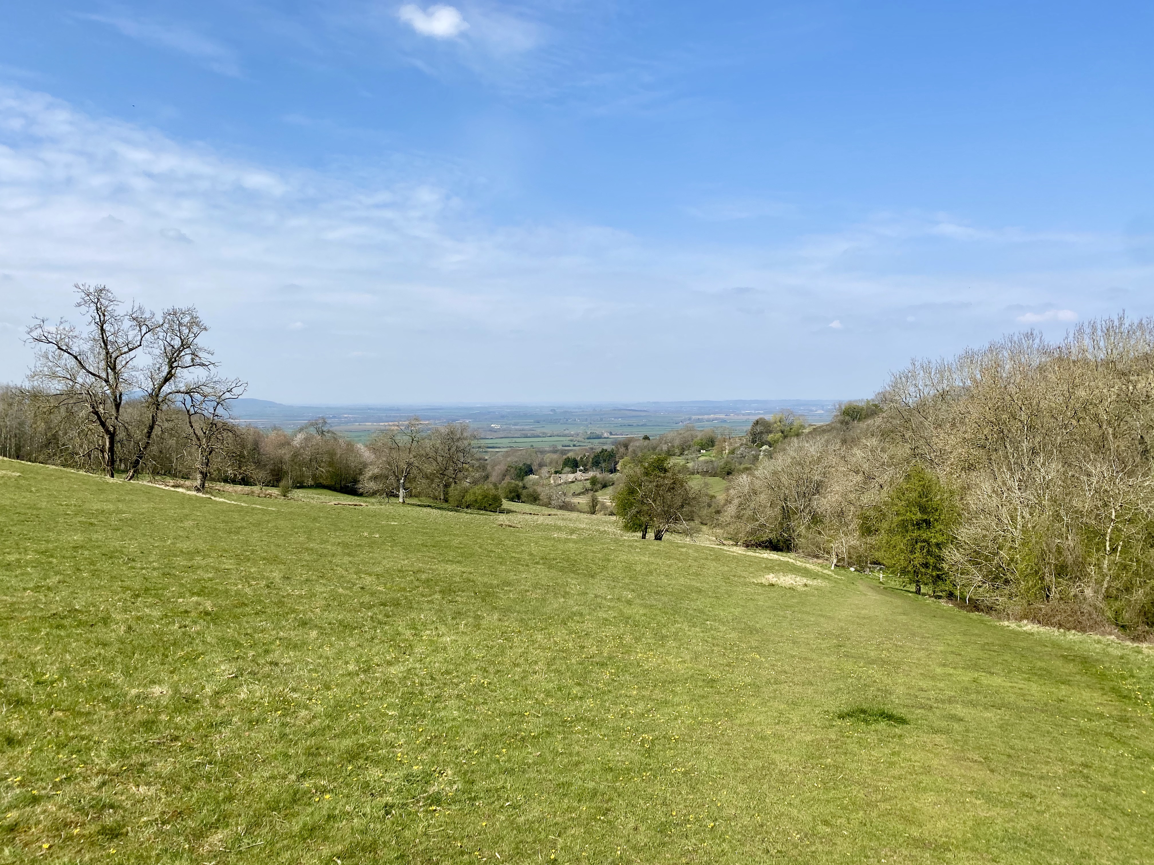 The trail then begins the final descent into Stanton, the path following the steep contour of a cleave, which, I learnt yesterday, is a small dry valley, (you’re welcome again), and reaches meadows with views of the Vale of Evesham in the horizon