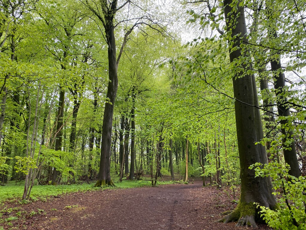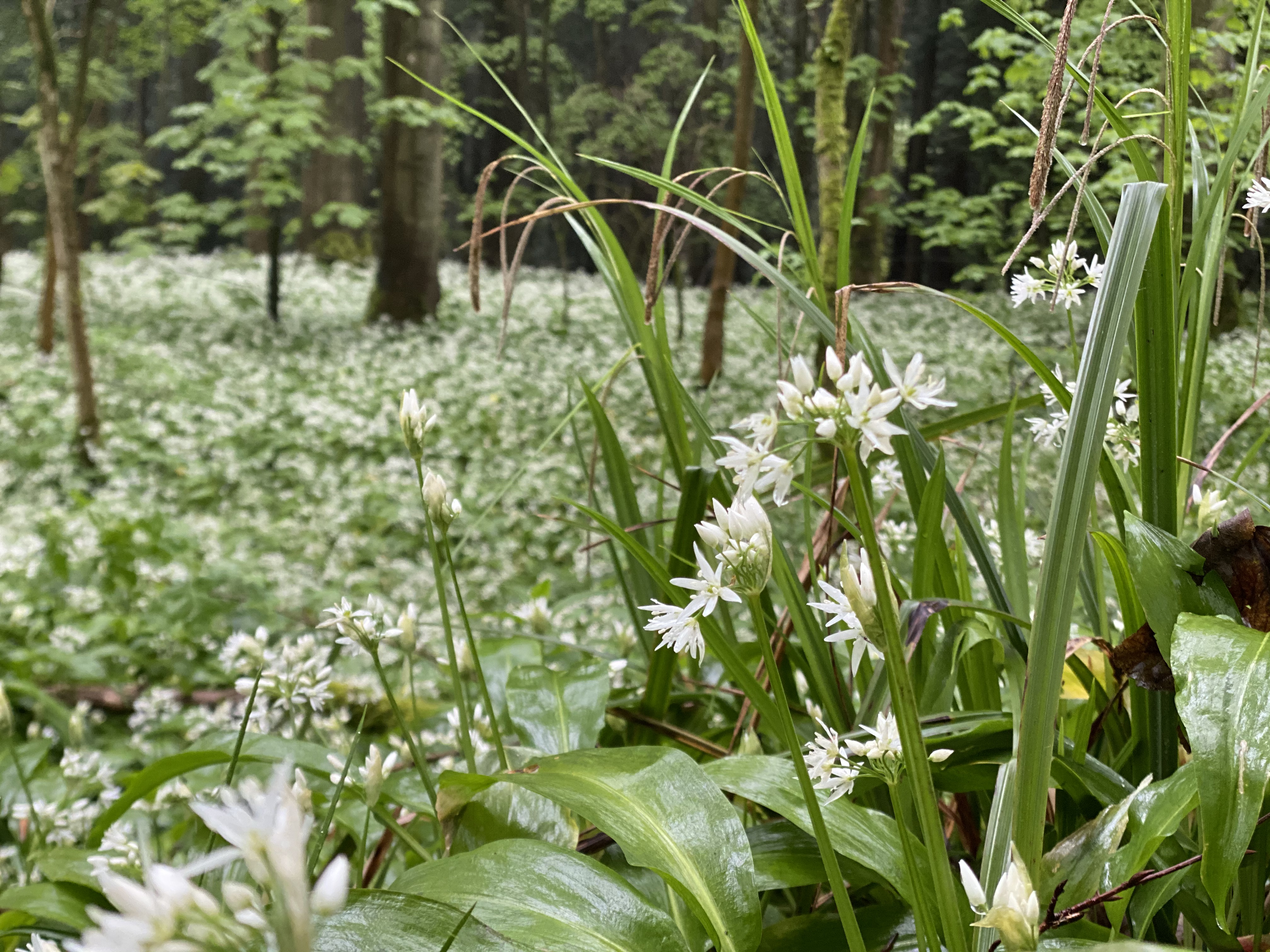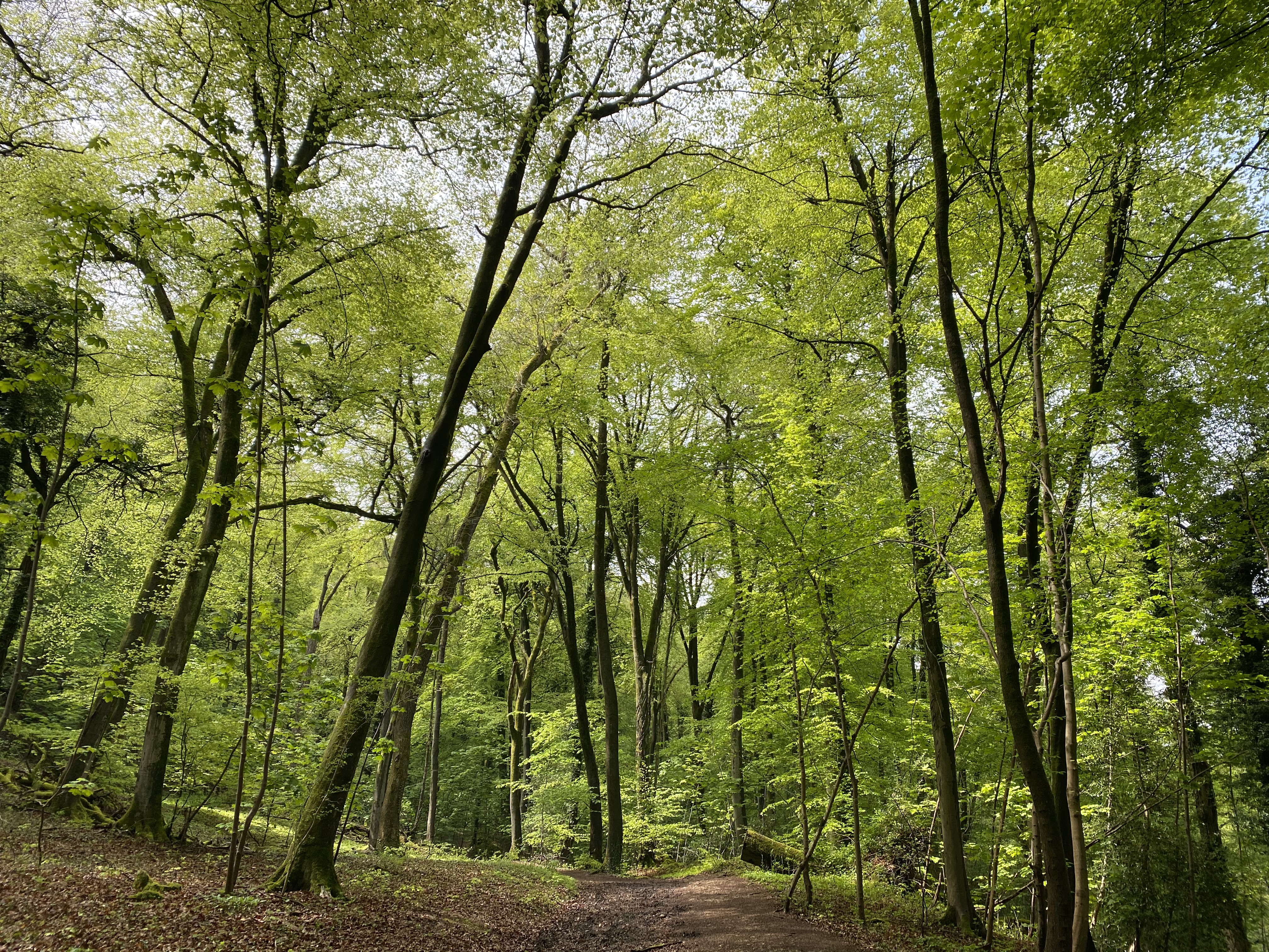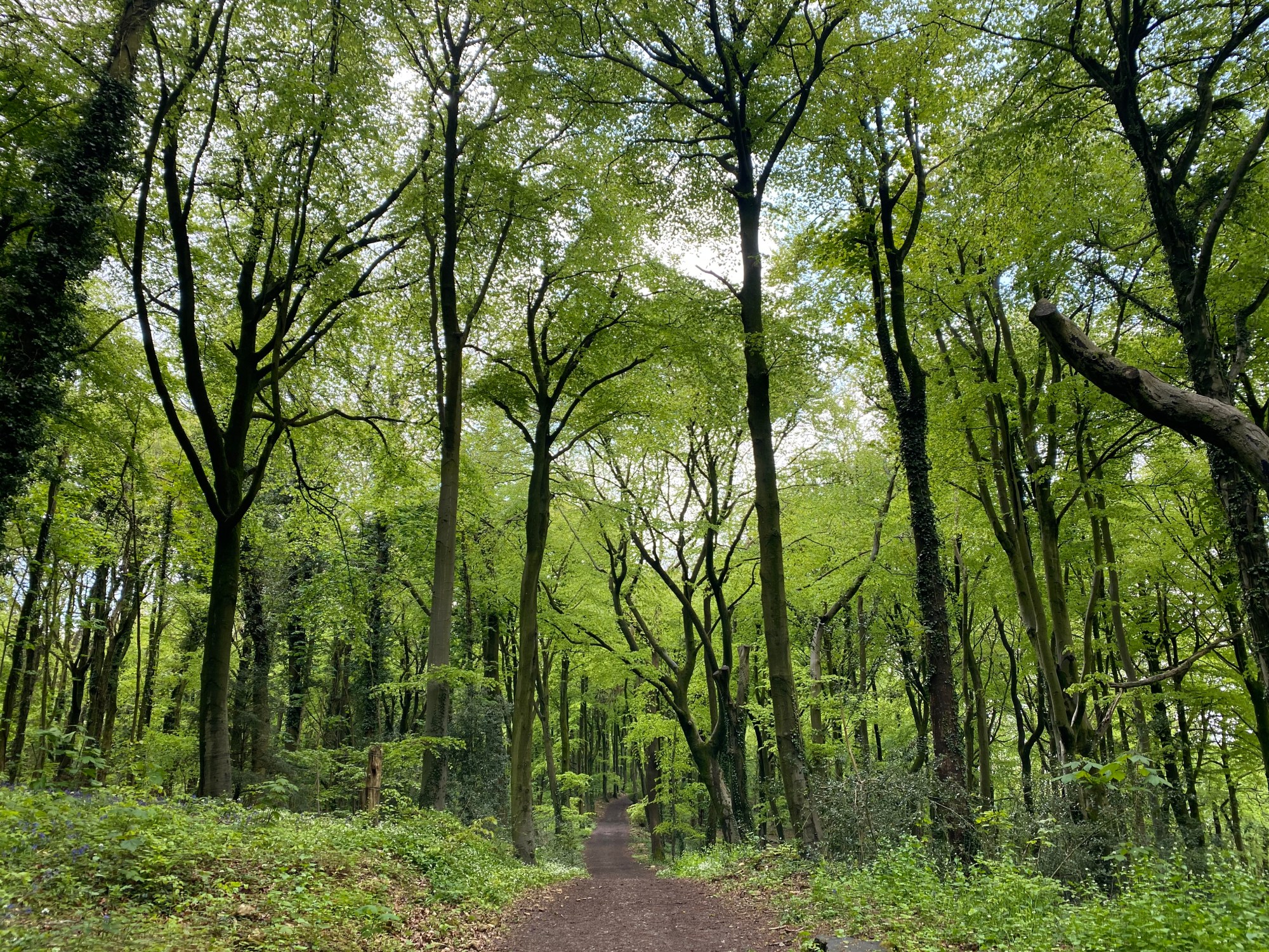 At the bottom right of the field in the photo above, there’s a gate (the first many, many gates) and from then on and for the majority of today you’ll be walking in woodland, and it’s very serene. Soft paths through tall trees, seas of bluebells and wood anemones and wild garlic. Birds chirping, the odd walker or two. Very calm. (Also lots of mud after all the rain we’ve had recently, and slugs… lots of slugs…).