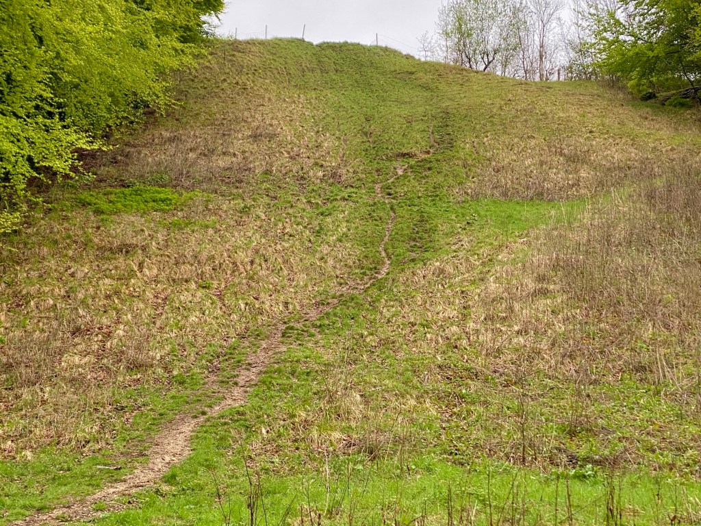 After a small road section you arrive at the famous Cooper’s Hill, the site for the bonkers cheese rolling race. Have you seen the documentary on Netflix about it? It’s really good! , Cooper’s Hill was, in 500bc part of an Iron Age encampment, and you can see why, the view across the valley are quite something – or they would have been on a clear day…
