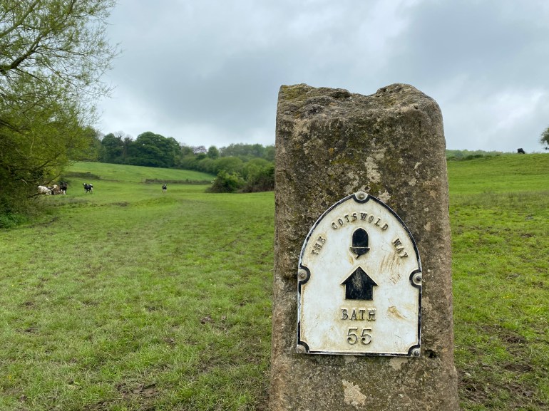 The Cotswold trail begins just after the pub, the road dips down towards the valley and it follow the contour of the Cotswold hills.