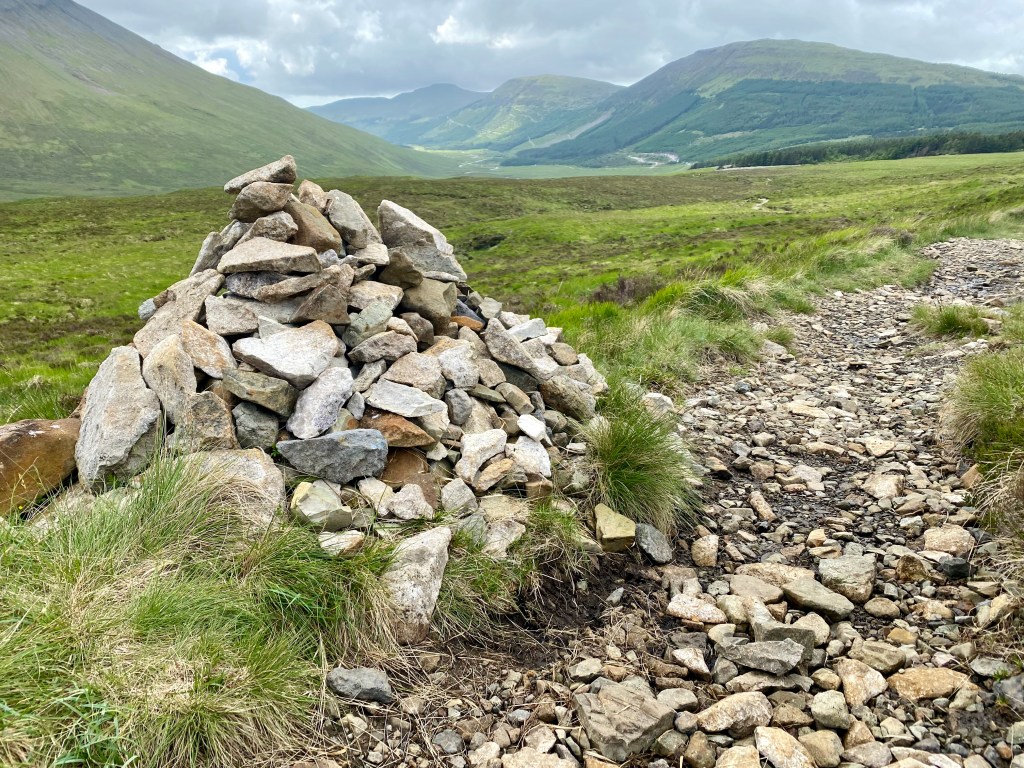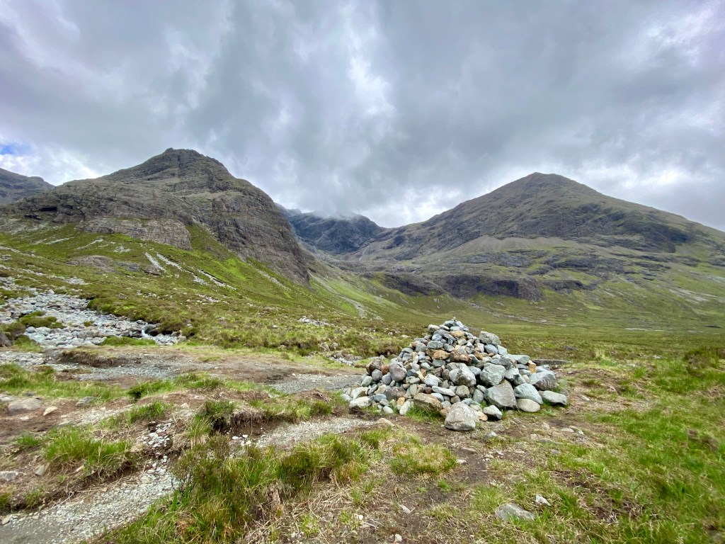 A couple of cairns signal the beginning of the longer path (which loops left across Glenn Brittle and then back down to the beginning of the trail. The views are immense, I highly recommend it.