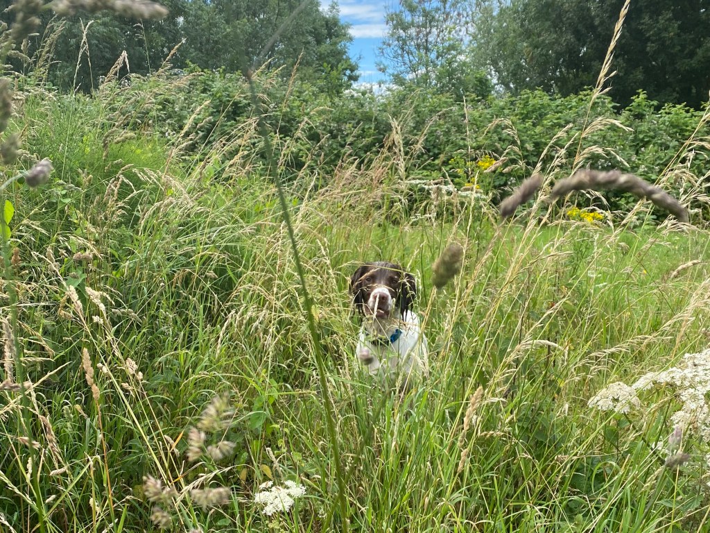 The tall grass is perfect for hide and seek games, for practicing recall and retrieve…