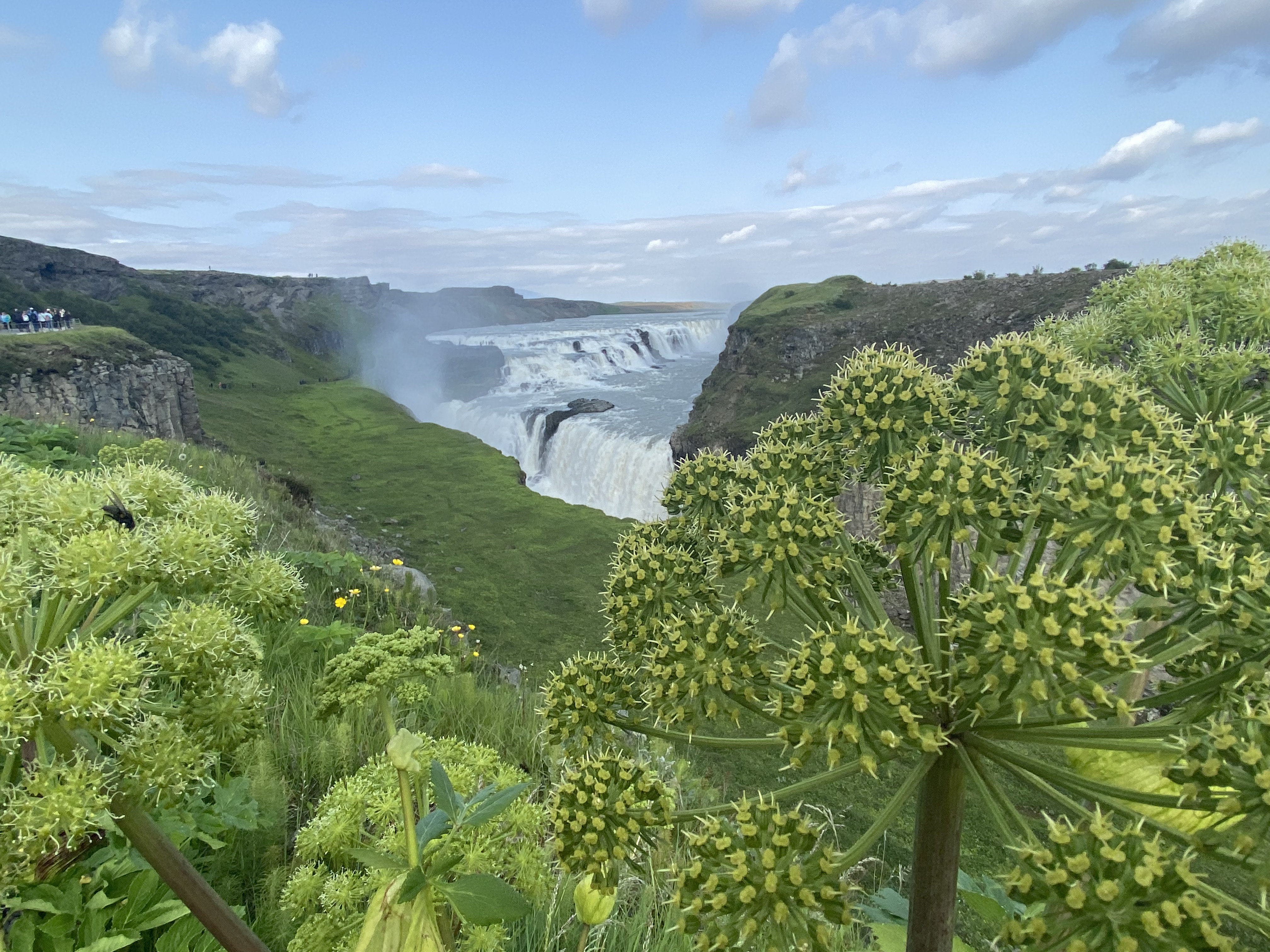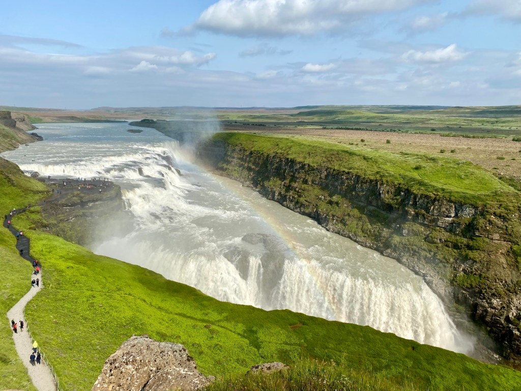 After this, more water… from cold to hot to sheer volume of the stuff: Gullfoss waterfall. A big one.