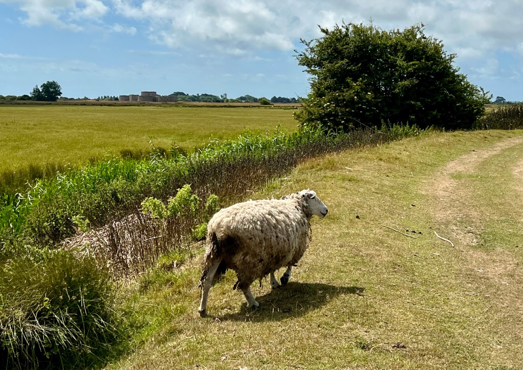 The sun is shining in Rye and I leave early and go for a walk. My plan is to reach the castle on the outskirts of town, but I take the wrong turn because I stumble across a too large to cross irrigation ditch/stream between me and the ruins. The sheep in the field look at me knowingly and roll their eyes at my mistake, most likely I’m not the the first walker to do this.