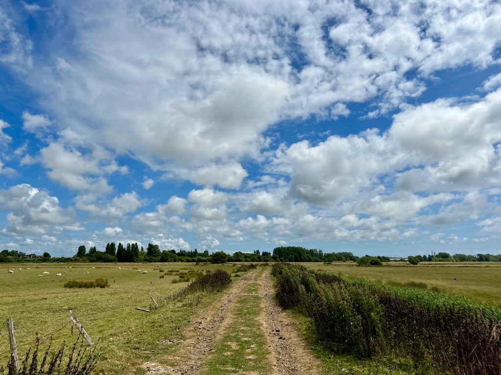 … But the sun is shining and the sky is boundless and full of my favourite fluffy clouds, I carry on walking.