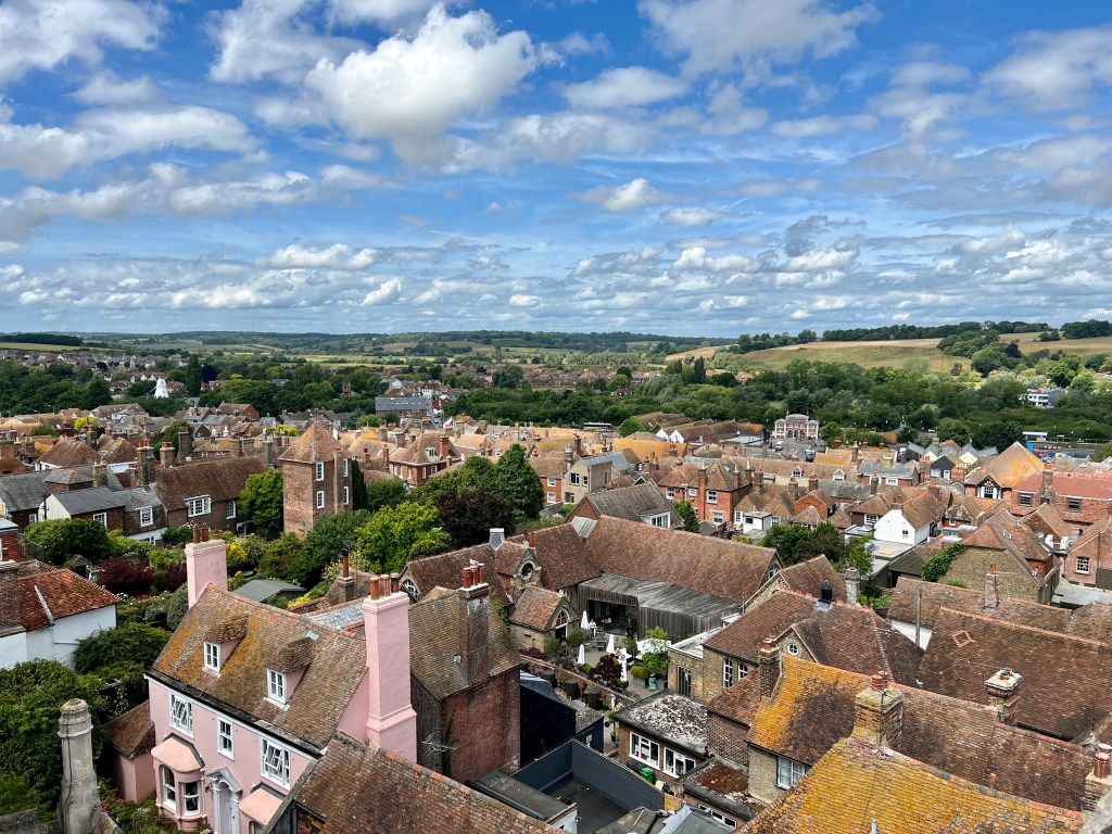 I head up towards the church at the top of the town. St Mary the Virgin – about 900 years old – houses the oldest church turret clock in the country. It dates from 1561-2 and has an 18ft long pendulum (a much later addition) which can be seen swinging in the body of the church. The present exterior clock face and the original ‘Quarter Boys’ (so called because they strike the quarters but not the hours) were added in 1760.