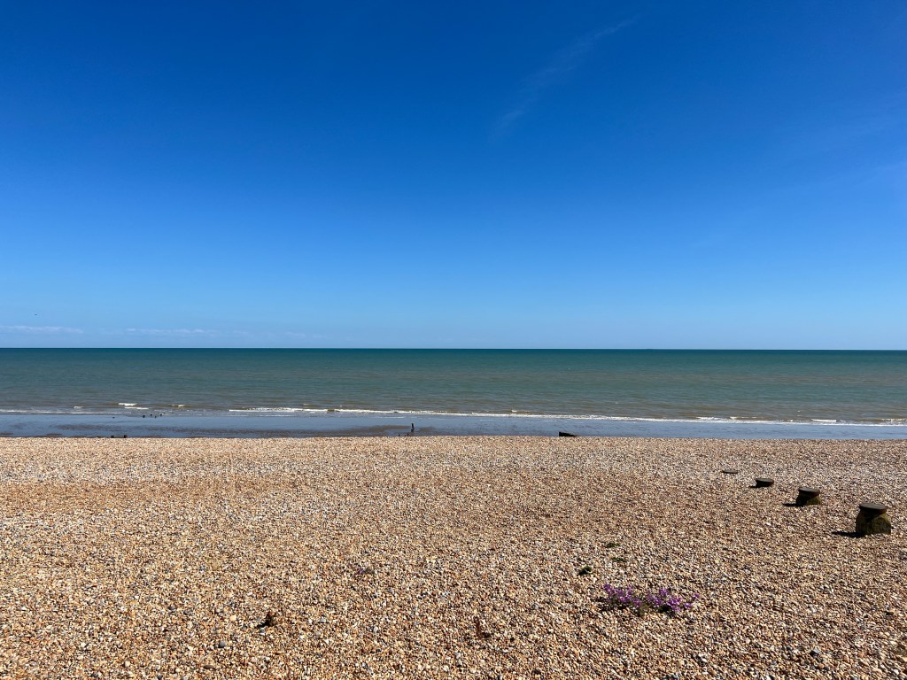 I drive a short distance to Winchelsea Beach. It is vast. It is empty and pebbly, the sun and the wind fight for supremacy and I’m not sure who’s winning. I grew up on the Adriatic Coast and this to me feels a little desolate and not beachy enough for me. I don’t feel like sitting down and hang out.