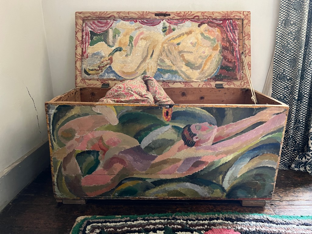 Charleston was the house rented by Vanessa Bell, her lover, the painter Duncan Grant and his partner David Garnett in 1916. “Almost as soon as they moved in, Bell and Grant began to paint every surface in the farmhouse, transforming it into a living, breathing work of art. Over the following decades, Charleston became a gathering point for some of the 20th century’s most radical artists, writers and thinkers known collectively as the Bloomsbury group. It is where they lived out their progressive social and artistic ideals.“
