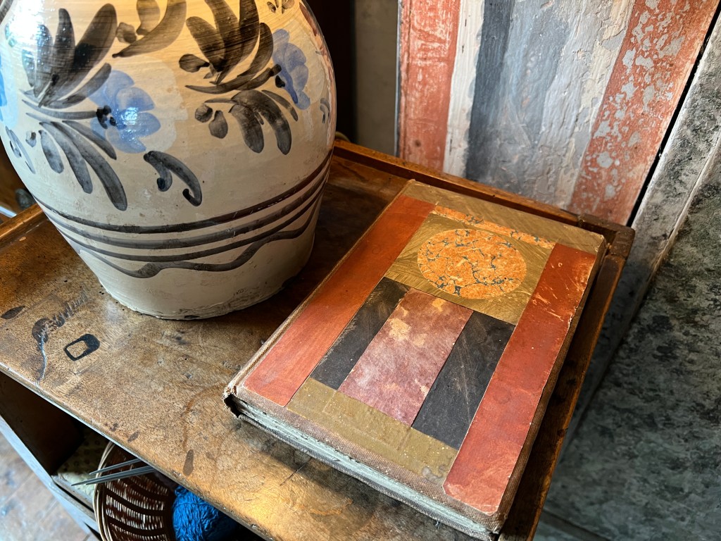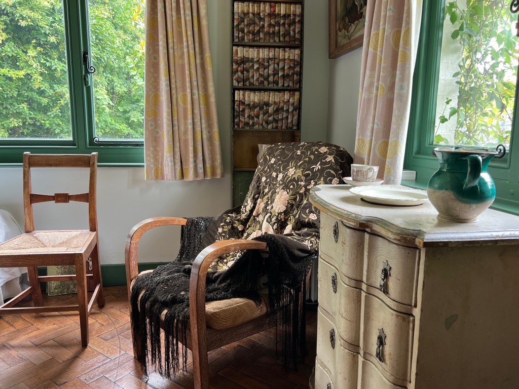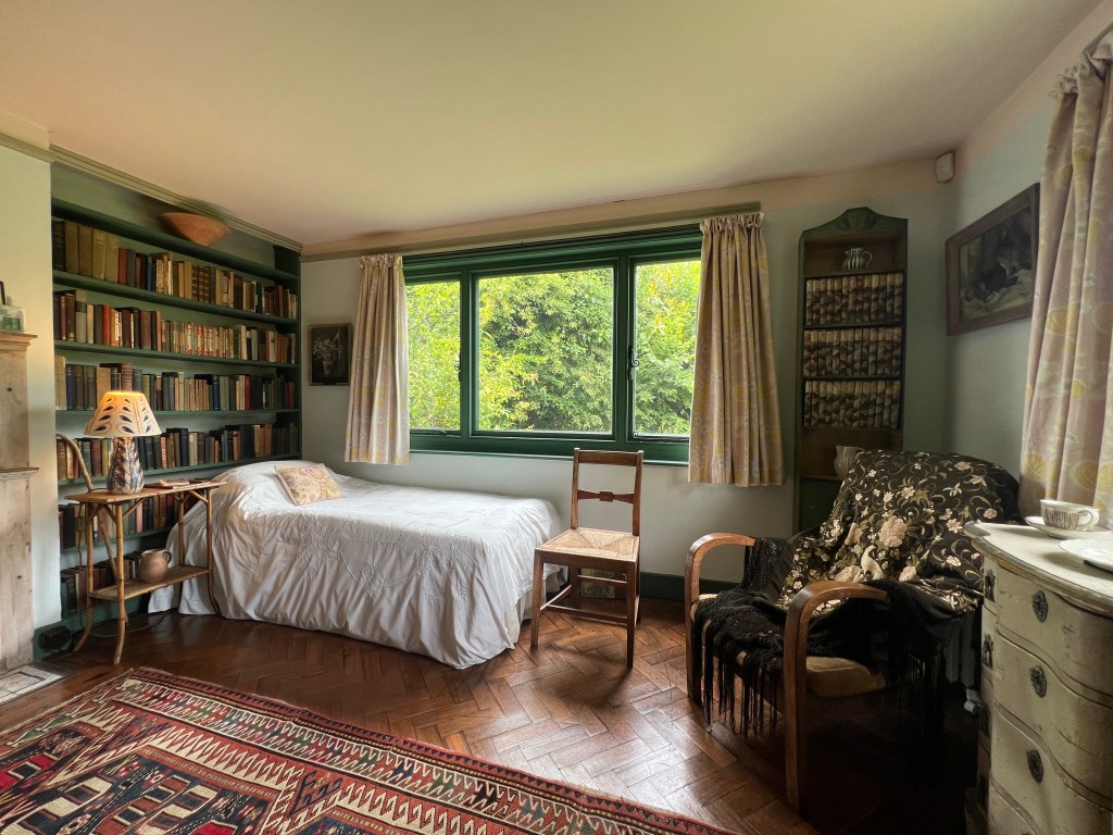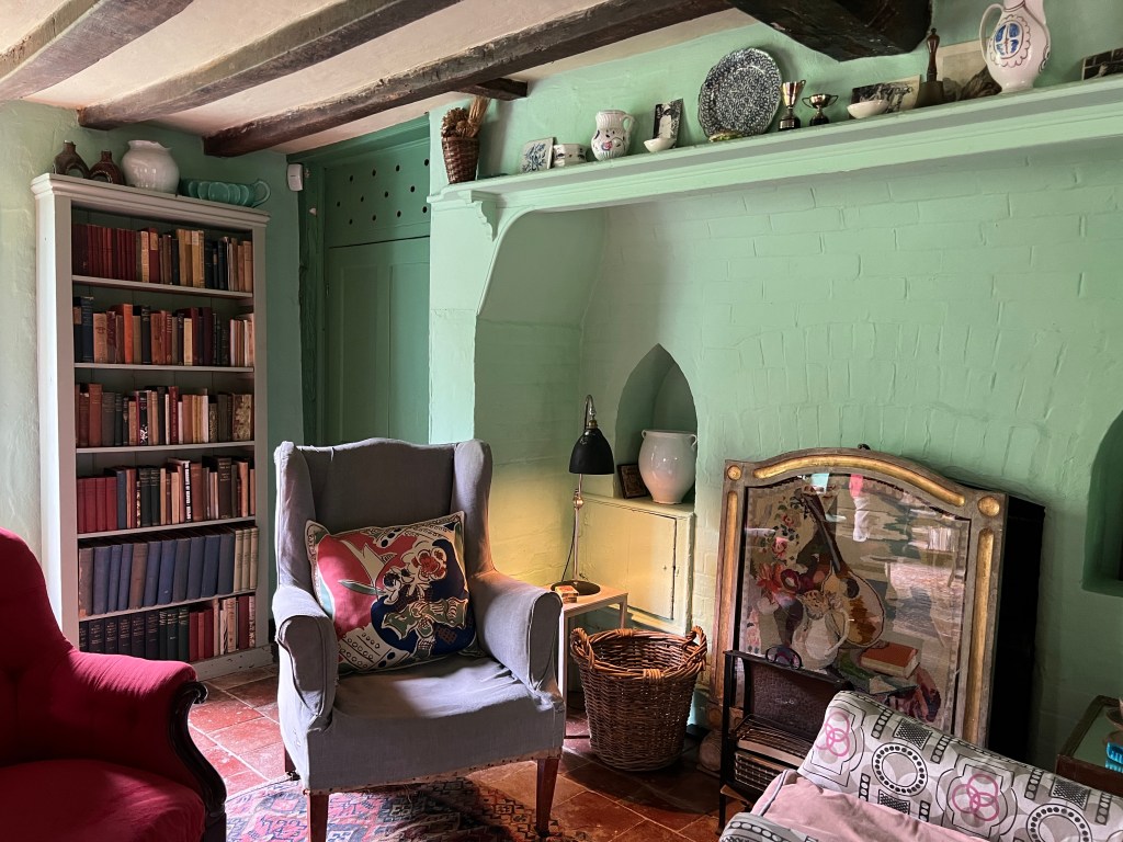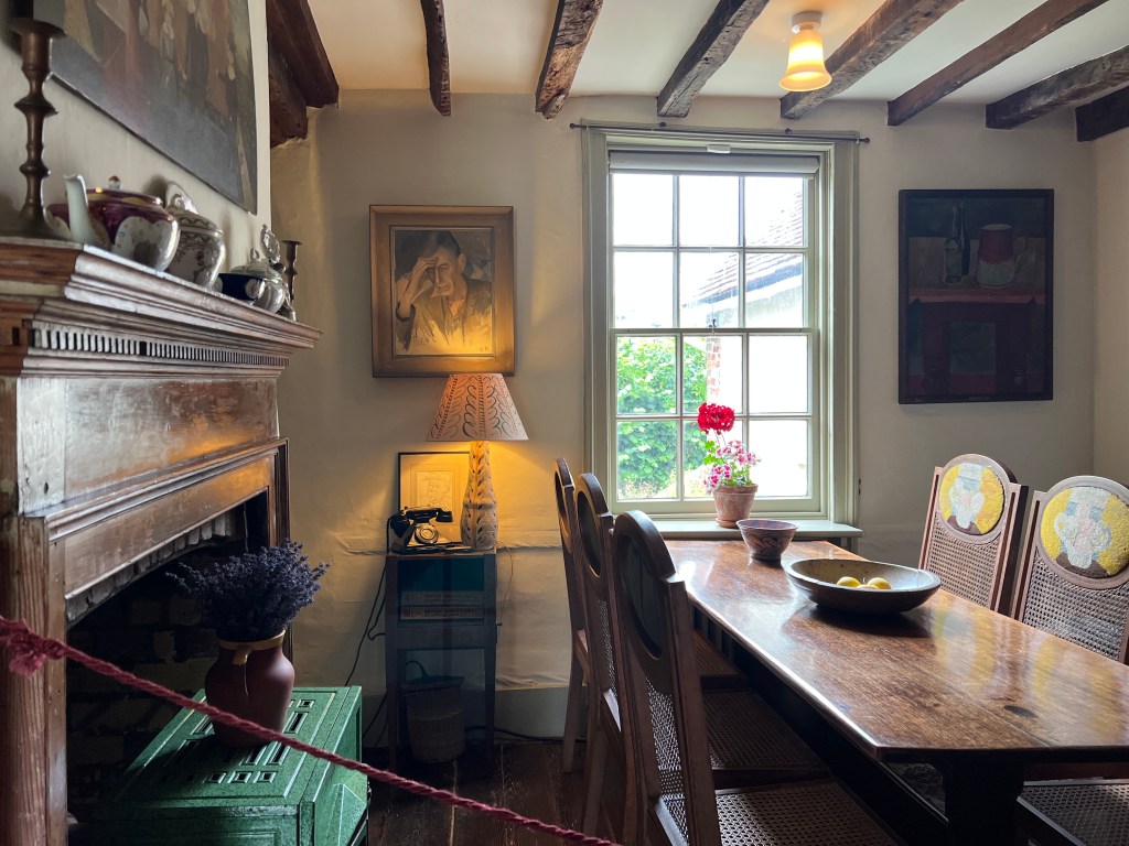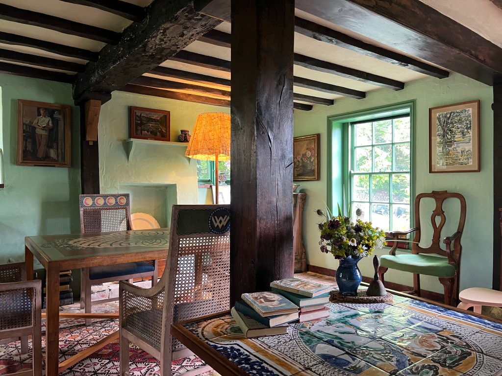 The cottage is small, has a low ceiling. The upstairs is not visitable, but the ground floor is perfection. The furniture is mismatched, some is painted by Vanessa, the walls are green, Virginia’s favourite colour.