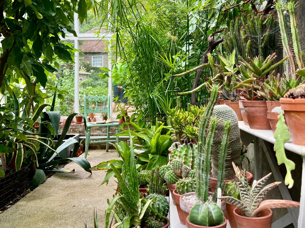 Attached to the back of the house is conservatory full of plants, succulents mainly and geraniums, vivid pinks and reds.