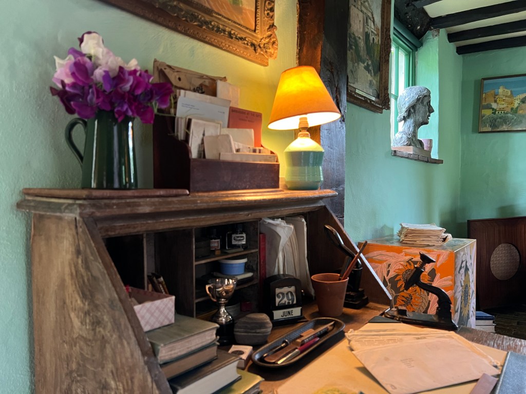 At the end of garden is her writing room with her desk. I find writers’ desks magical places. They have their own auras…