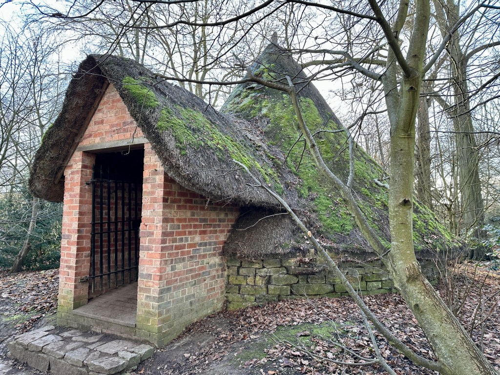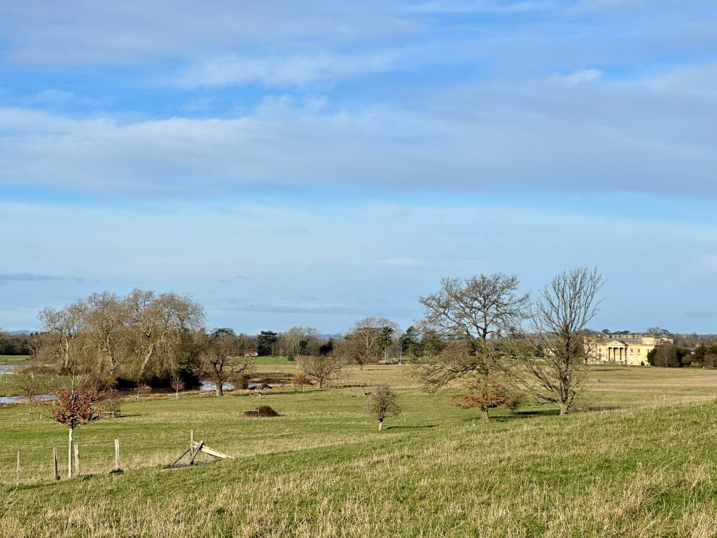 A few steps and a long straight path through – mercifully frozen fields – took us to a ‘Park Seat’ designed by Robert Adam which has a wonderful view pass the lake to the house.
